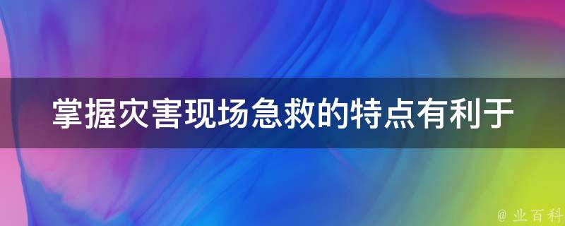 掌握灾害现场急救的特点有利于充分做好急救的各项准备工作,并采取及时有效的现场急救措施。现场急救的任务是采取及时有效的急救措施和技术,最大限度地减少伤病员的疾苦,降低致残率、减少死亡率,为医院抢救打好基础。经过现场急救能存活的伤病员优先抢救。