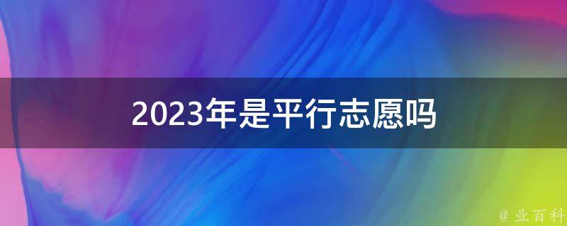 2023年是平行志愿。平行志愿是指在中国高考录取过程中,考生可以根据自己的成绩以及对学校专业的喜好,在填报志愿时选择并排列多个志愿,高校根据考生的成绩和志愿优先顺序进行录取的方式。在高考志愿填报时,考生可以根据自己的兴趣、特长和成绩情况,选择多个目标学校和专业,并按照自己的意愿对这些志愿进行排列顺序。一般来说,考生可以填报多个院校和专业,且不同志愿之间没有先后顺序的限制,也就是平行填报。