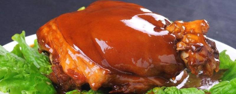 食材明细:猪肘子、甜面酱、葱姜、八角、桂皮、香叶、冰糖、蚝油、红烧酱油、干辣椒、盐、老汤。