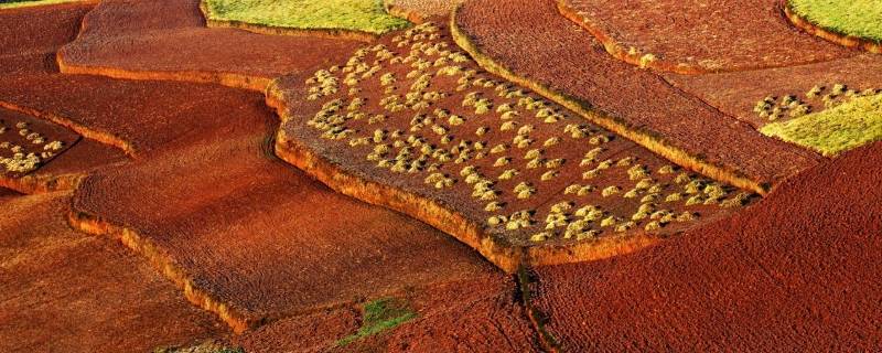 大地是由各种颗粒状矿物质、有机物质、水分、空气、微生物等组成,能生长植物。土壤由岩石风化而成的矿物质、动植物、微生物残体腐解产生的有机质、土壤生物(固相物质)以及水分(液相物质)、空气(气相物质)、氧化的腐殖质等组成。
