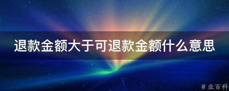 最佳答案退款金额大于可退款金额是指在一次退款操作中,退款金额不能超过预设的最大金额,例如:如果单笔退款总额上限为1000元,则一次退款的金额不能超过1000元。这是为了防止恶意退款、欺诈行为等,保护商家的利益。