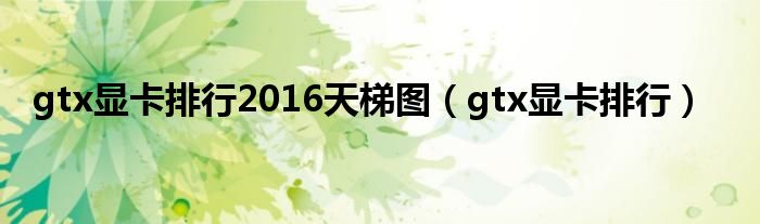 gtx显卡排行2016天梯图(gtx显卡排行)