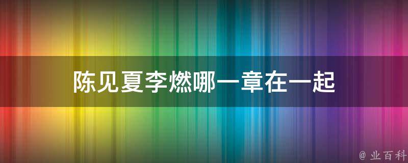 最佳答案陈见夏李燃第22章在一起。在小说《这么多年》的情节设定中,陈见夏在第二十一章时给李然发送短信表白,在第二十二章的情节中,李然答应了陈见夏的表白,两人正式在一起。这本书不单是陈见夏与李燃的恋爱故事,也是陈见夏的成长故事。