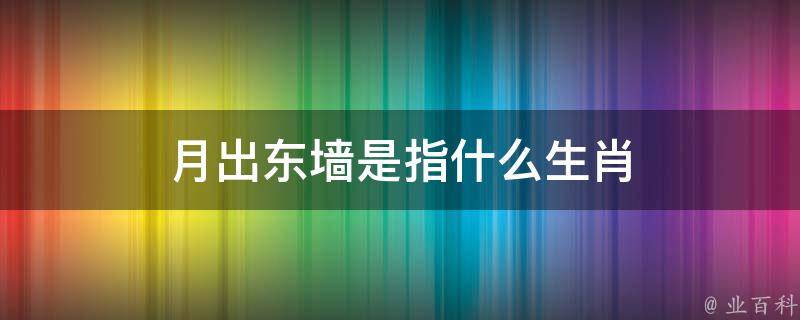月出东墙是指生肖鸡。月出东墙的意思是天亮了,而鸡通常会在天亮的时候打鸣,所以,月出东墙是指生肖鸡。属鸡的人脑筋转的很快,个性好胜专注,凡事不愿落人之后,非常有自信。