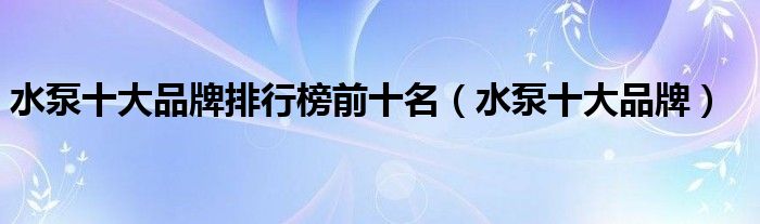 关于水泵十大品牌排行榜前十名,水泵十大品牌这个很多人还不知道,今天菲菲来为大家解答以上的问题,现在让我们一起来看看吧!