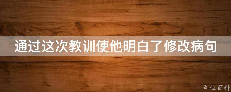 通过这次教训,他明白了认真做事的重要性或这次教训,使他明白了认真做事的重要性。通过和使不能连用。因为通过是一个介词结构,不能做主语,所以使就没有主语了。通过和使是病句的理由是主语残缺。这种病句,修改时要么删掉通过,要么删掉使。