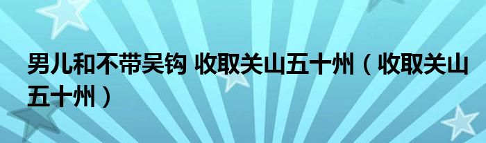 关于男儿和不带吴钩 收取关山五十州,收取关山五十州这个很多人还不知道,今天菲菲来为大家解答以上的问题,现在让我们一起来看看吧!