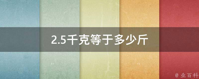2.5千克等于5斤。1千克(公斤)=2斤,所以2.5千克=2.5*2=5斤。国际标准单位中没有斤,这是我国的一个单位。我国的市斤原来16两制(16两=1市斤),后把16两制改成10两制(10两=1市斤)。
