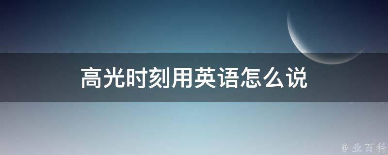 高光时刻用英语是Highlight time。高光时刻指的是巅峰时刻、精彩时刻的意思,经常在体育比赛中使用,当有运动员在比赛中表现非常出色时,大家就会把这一瞬间称为高光时刻。后面用途变得很广,大概就是很值得骄傲的瞬间。