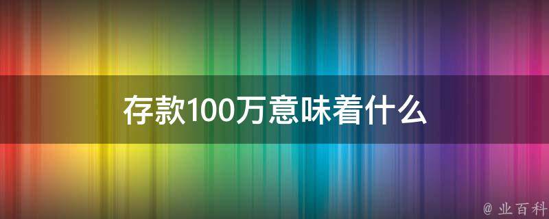 存款100万意味着什么