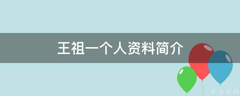 王祖一,4月20日出生于辽宁省大连市,毕业于上海视觉艺术学院表演系,中国内地影视男演员。2021年,主演都市爱情剧《恋爱指南我指北》,从而进入演艺圈;同年,主演古装武侠爱情剧《医仙小凡》。2022年,主演的古装轻喜剧《拜托了!大侠》和古装爱情剧《独女君未见》相继播出。2023年,演的都市爱情剧《二见钟情》播出;同年,发布单曲《生生念》。
