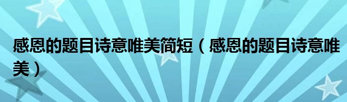 大家好,我是小科,我来为大家解答以上问题。感恩的题目诗意唯美简短,感恩的题目诗意唯美很多人还不知道,现在让我们一起来看看吧!