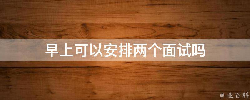 早上可以安排两个面试,前提是把时间安排好,一般的面试时间会安排在上午9点以后到中午12点之前,如果两个单位的距离不是很远的话,是来得及的。当然,最好是不要安排得特别紧密,因为面试的时间有长有短,很可能会来不及,给对方造成不利的影响。一般来说,上午和下午各安排一个面试是比较合理的。