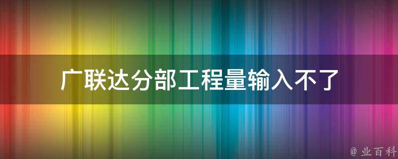最佳答案1、广联达软件本身的问题:这种情况可能是软件本身存在bug,或者版本不兼容,可以尝试升级到最新版本,或者重新安装软件。2、输入的工程量有误:可能输入的工程量数据格式不正确,或者输入的数据不符合软件要求,可以检查输入的数据是否正确。3、电脑系统的问题:电脑系统可能存在某些问题,影响软...