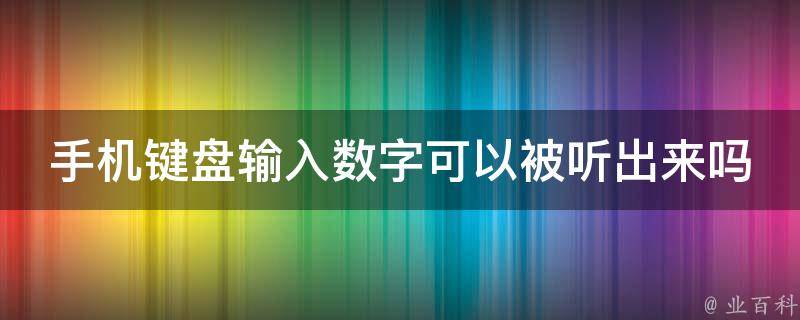 手机键盘输入数字可以被听出来。手机键盘输入数字的声音可以通过麦克风进行录制,然后分析声音的频率,从而得到键盘上输入的数字。改变打字模式或使用复杂的随机密码可以帮助规避这种情况的发生。