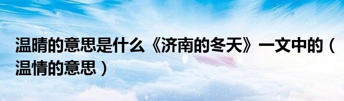 大家好,我是小科,我来为大家解答以上问题。温晴的意思是什么《济南的冬天》一文中的,温情的意思很多人还不知道,现在让我们一起来看看吧!