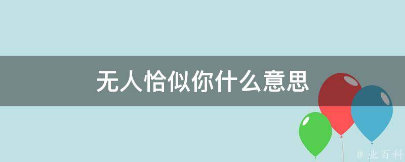 最佳答案无人恰似你的意思是在所有人中,没有人能够与你相比,你是独一无二的,无人能够媲美你。这句话通常用来表达对某人的特殊才能、品质或魅力的赞美,强调他们的独特性和与众不同之处。它可以用于表达对亲人、朋友、爱人或其他特别的人的赞美和爱意。