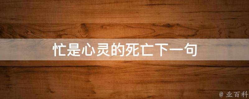 忙是心灵的死亡下一句是:心静才能看清方向。这句话的意思是:当我们忙碌的时候,可能会感到精神上的疲惫和空虚。这种状态可能导致我们失去对生活和目标的清晰认识,感觉好像我们的心灵已经死亡。然而,当我们静下心来时,我们才能够看清自己真正的方向和目标,重拾对生活的热情和动力。