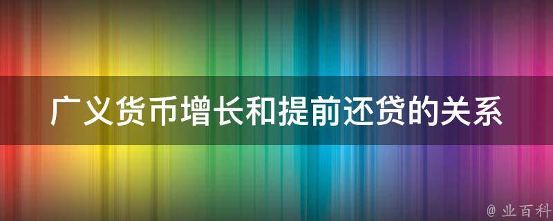 最佳答案广义货币增长和提前还贷存在负相关关系。广义货币增长越快,居民存款同比增加越多,居民提前还贷明显减少,抵消居民消费支出增加,企业存款同比少增,可能与企业贷款需求不足有关。广义货币是指流通于银行体系之外的现金、企业存款、居民储蓄存款以及其他存款的总和,包括定期存款与居民在证券资金...