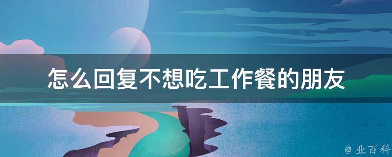 回复不想吃工作餐的朋友可以说:工作餐确实有时候不太好吃,你可以尝试自己带便当,自己做的饭吃起来会更加美味哦。工作餐是单位为上班职工提供的比较简单的饭菜,也指开会等公务活动时所吃的饭菜。