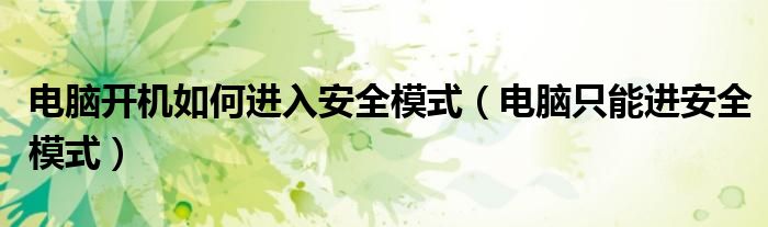 今天小饼为大家解答以下问题,关于电脑开机如何进入安全模式,电脑只能进安全模式很多人还不知道,现在让我们一起来看看吧!
