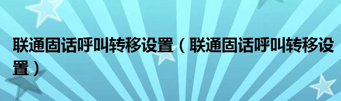 联通固话呼叫转移设置(联通固话呼叫转移设置)