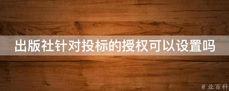 出版社针对投标的授权可以设置,因为图书的特性,作者和出版社都是属于技术参数,供应商投标都是代理商,必须满足招标方的要求。而且这些不属于歧视性条款。出版社指进行图书、图画、杂志、报纸和电子物品等有版权物品的出版活动的组织。如:人民出版社、中国农业出版社、中国林业出版社等。