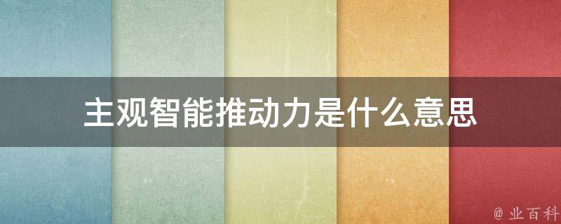 主观智能推动力是指个人在特定领域内,利用自身知识和技能,通过主观判断和推理,产生推动该领域发展的动力。这种推动力通常源于个人的兴趣、价值观和能力,可以表现为创新、发现、发明、领导和影响他人等行为。在实践中,主观智能推动力可以帮助个人在特定领域内取得突破性进展,推动该领域的发展和创新。