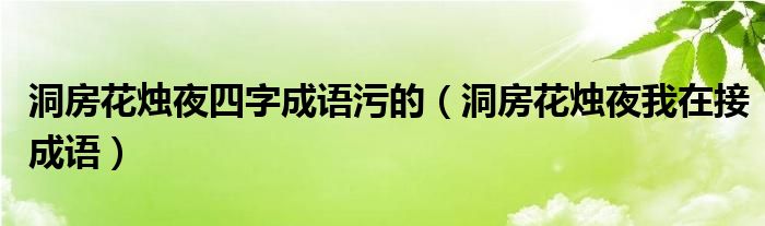 大家好,我是小科,我来为大家解答以上问题。洞房花烛夜四字成语污的,洞房花烛夜我在接成语很多人还不知道,现在让我们一起来看看吧!
