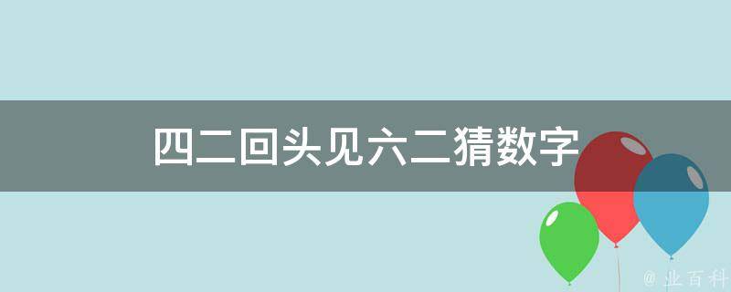 最佳答案四二回头见六二猜数字是8。因为2x4=8,6+2=8,所以,四二回头见六二猜数字是8。在数字谐音中,8代表发、拜拜、不,另外,0代表圆满、完美、无尽;1代表唯一、你、起点;2代表爱、两人世界。