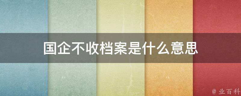 国企不收档案是指国企在招聘员工时,不会接收或保留他们的档案。一般来说,国企或机关事业单位在招聘员工时,会要求员工将档案转至单位或其上级人事部门,以便记录员工的工作经历、考核评价等信息。建议提前了解该国企是否接收员工的档案,并咨询相关负责人或人力资源部门了解具体情况。