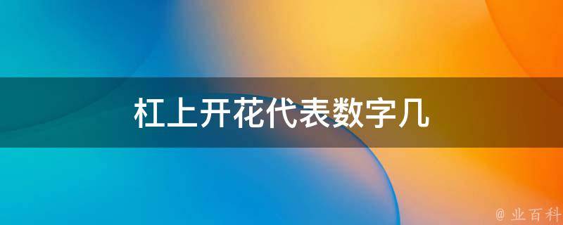 杠上开花代表数字8。因为杠上开花是发财的意思,而8谐音发。8是众多阿拉伯数字中的一个。8的笔画只有1画,是7与9之间的一个自然数。8是一个有理数,存在于7和9中间的自然数、正整数、合数、偶数和立方数。
