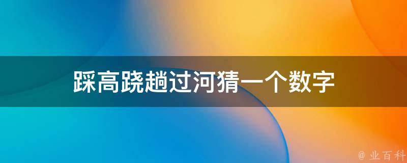 踩高跷趟过河猜一个数字是6。踩高跷过河是一种传统的民间游戏,考验对方的平衡感和协调能力,说明技术很6。所以,踩高跷趟过河猜一个数字是6。在数字谐音中,6代表顺利、溜达,另外,0代表圆满、完美、无尽;1代表唯一、你、起点;2代表爱、两人世界。