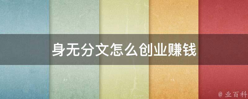 身无分文怎么创业赚钱