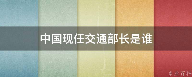 中国现任交通部长是李小鹏。李小鹏,男,汉族,1959年6月出生,四川成都人,1985年5月加入中国共产党,1982年8月参加工作,大学学历,高级工程师。现任第十四届全国政协常委、交通运输部部长、党组书记。