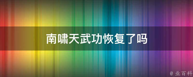 南啸天武功恢复了。根据查询《我有一个朋友》微博信息显示,该片中的南啸天经过神医的治疗和调养,最终恢复了身体健康,武功重回巅峰。该剧讲述了武学宗师梦三息为了追查好友被害的真相,来到暗藏多股江湖势力的木云城,在无名百货发生的一系列啼笑皆非的江湖故事。