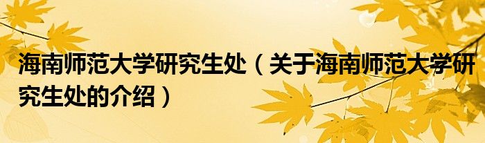 海南师范大学研究生处(关于海南师范大学研究生处的介绍)