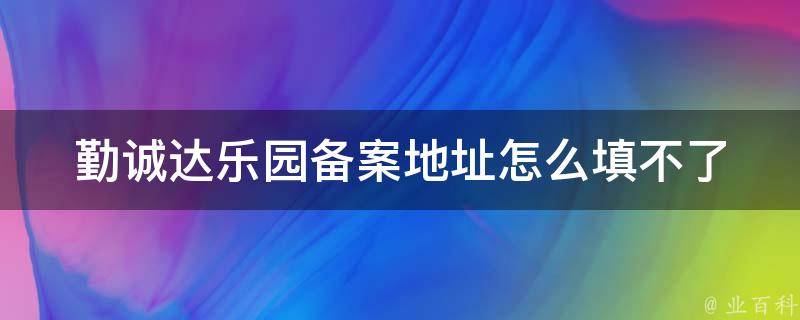 勤诚达乐园备案地址填不了,可能是地址不详细或者与地区不一致,需要提供正确、详细、准确的信息和地址。也可能是信息填写错误,需要重新填写。如果代理商需要修改或者重新填写备案信息,可以直接在后台编辑备案信息。
