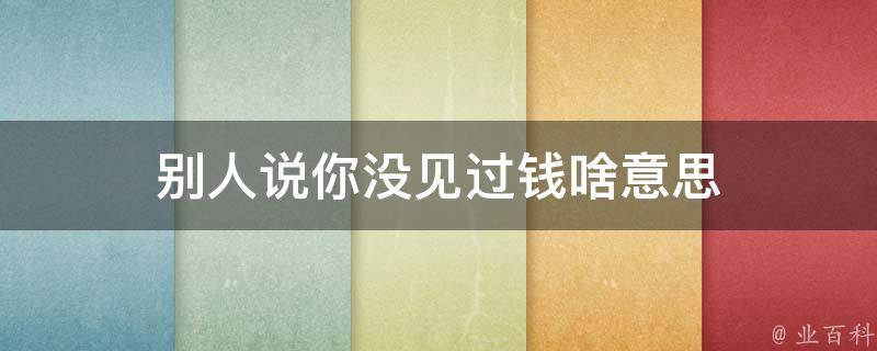 1、轻视或嘲笑:对方可能认为你没有见过很多钱,因此对你有些轻视或嘲笑。这种情况下,他可能想表达的是你并不了解真正有价值的财富是什么样子的。