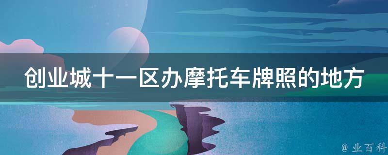 创业城十一区办摩托车牌照的地方位于车管所。在办理摩托车牌照前,需要准备好相关材料,包括购车发票、车辆合格证、车主身份证等。在车管所填写申请表并提交相关材料后,经过审核并缴纳相关费用,即可领取摩托车牌照。