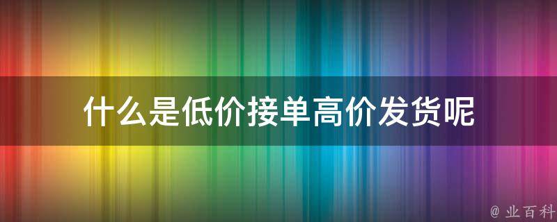 低价接单高价发货是指商家以较低的价格接单,然后以较高的价格将商品发货给客户。在这个过程中,商家可能通过在订单中增加运费或服务费等方式来提高发货价格。需要注意的是,商家应该遵守相关规定,诚实守信地为客户提供服务。