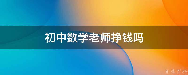 初中数学老师挣钱,但具体的收入水平会受到多种因素的影响。教师的薪资通常与其经验和职称有关,初中数学老师在教学生涯中可以逐步积累经验,提高教学质量和水平,从而增加收入。
