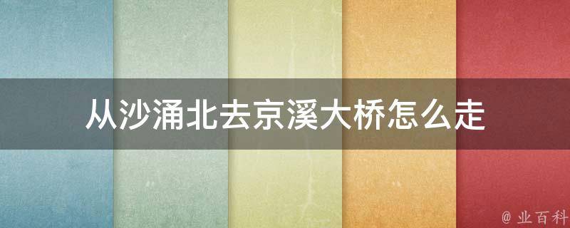 最佳答案1、从沙涌北步行至北村桥站,乘坐地铁2号线(广州南站方向),在广州火车站下车,步行至广州火车站(草暖公园)站。2、乘坐高峰快线31路或179路公交车,在同和站下车。3、在同和站乘坐高峰快线48路公交车,在京溪路口站下车。4、步行至京溪大桥。