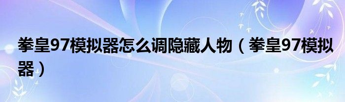 大家好,我是小科,我来为大家解答以上问题。拳皇97模拟器怎么调隐藏人物,拳皇97模拟器很多人还不知道,现在让我们一起来看看吧!