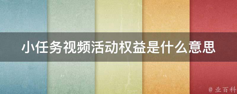 小任务视频活动权益是指创作者参与视频号活动,按照活动要求制作和发布视频,即可获得相应的权益。小任务是微信广告上线面向视频号作者的现金任务撮合产品,多行业任务,创作者可在小任务里持续发现丰富商机,自由挑选感兴趣的任务参与。小任务也将持续上新,探索不同领域里的变现玩法。