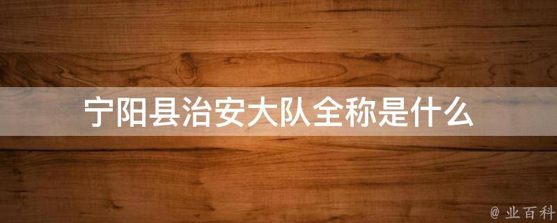 宁阳县治安大队全称是宁阳县公安局综合警务治安管理大队。治安大队是公安部门为了维持一方的社会安定、地方平安、居民安宁、社会动态、户籍管理、户口审批、人口统计而设立的专业队伍,一般由公安局主要领导直接主管。