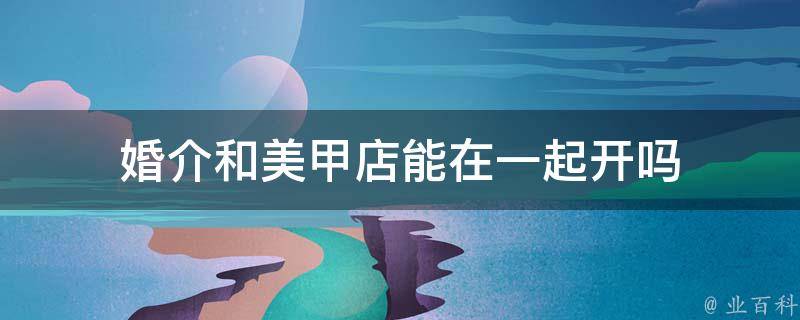婚介和美甲店能在一起开。这种经营模式可以为顾客提供一站式的美甲和婚介服务,方便顾客。但需要分别办理营业执照和卫生许可证等相关证件。另外,婚介和美甲店需要有不同的区域划分,以避免互相干扰。最后,需要考虑员工的管理和培训,以确保服务的质量和安全。