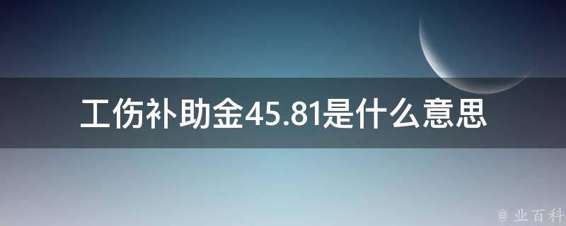 工伤补助金45.81是指因工伤事故导致员工暂时或永久丧失劳动能力,其所在单位按照规定的标准和程序支付给员工的医疗费用、生活补助费和伤残津贴等补偿的金额为45.81元。工伤补助金的数额通常与员工的工伤保险缴费基数、工伤等级、伤残程度等因素有关。