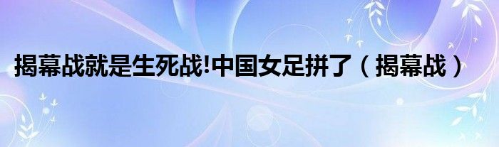 大家好,我是小科,我来为大家解答以上问题。揭幕战就是生死战!中国女足拼了,揭幕战很多人还不知道,现在让我们一起来看看吧!