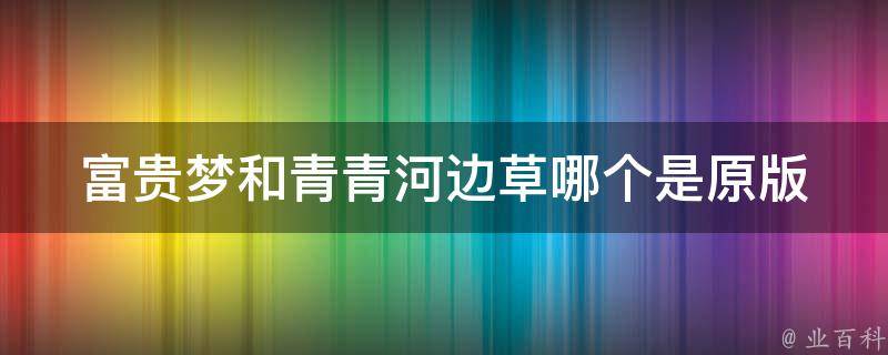 最佳答案富贵梦是原版。《富贵梦》是由著名歌手童欣作词和演唱的,经典的闽南语歌曲,是原版,这首歌国语版《青青河边草》是高胜美演唱,属于改编版。富贵梦歌词节选:一人一命款,拢是为钱忙,事业命运,是尚盖的看重,有人在怨叹,粗饭来过冬,有人醉生梦死,没焦烦,富贵的眠梦。